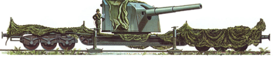 - Visual: Static-looking base, very long guns, often with twin 12-axle bogies.
