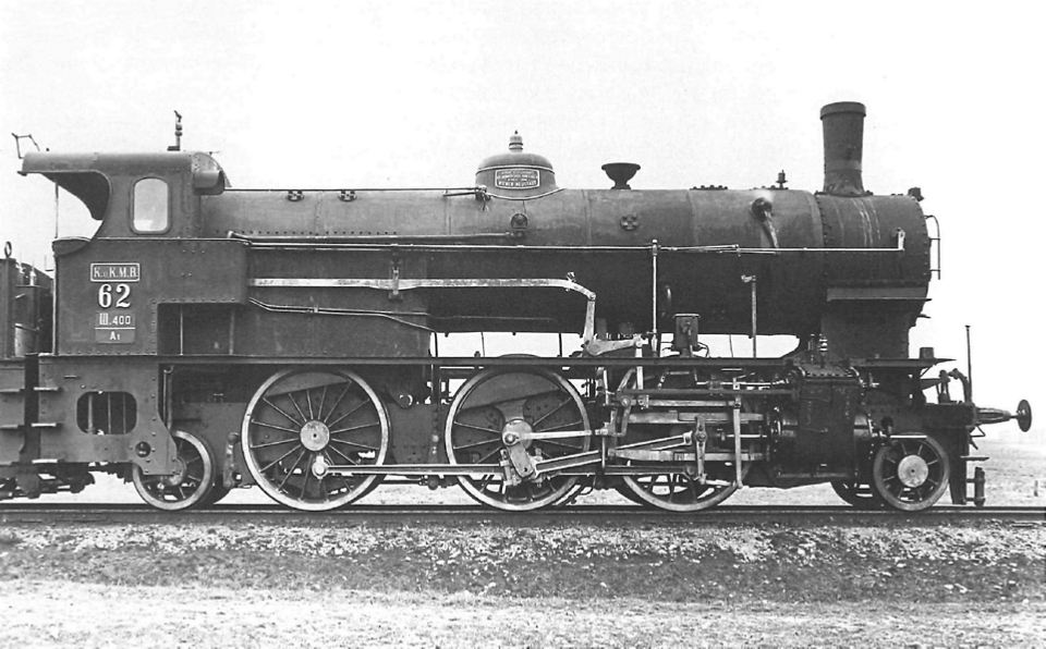 Two-cylinder compound locomotive No. 62 with wheel arrangement 1'C1' of the kuk military railway Banjaluka–Dobrlin, delivered in 1908 by the Wiener Neustädter Lokomotivfabrik