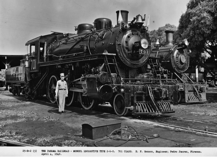 In the late 1930s, as these engines aged, the railroad ordered five new “701-class” steam locomotives (delivered 1939–1942) to modernize the fleet. Despite the new class name, these were still 2-6-0 Moguls (upgraded with superheaters). The 701-class engines (numbered 701–705) were used in both freight and passenger service​. Heavy-duty tasks – such as long freight drags of wartime supplies – were handled by double-heading Moguls if necessary. These World War II locomotives fleshed out the Panama Railroad's stud with superheated Moguls that delivered a healthy increase in power. Alexander Saunders noted that they had the"greatest tractive of any [Isthmian or Panamanian] steam engines." They weren't fast, A"but they can do a good job in steady running." They were not specialized military designs, but high-power standard-gauge locomotives chosen to handle the steep grades and 500+ ton trains associated with the 14-inch guns.