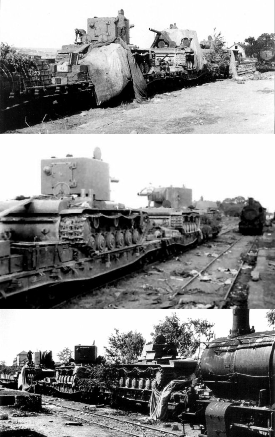 Captured KV-1 and KV-2 of the 6th Mechanized Corps, Baranovichiy, June 1941
