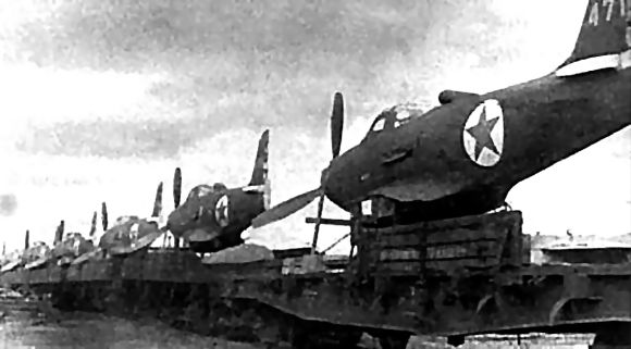 Pictured Above and Below: ALSIB-transferred Lend-Lease P-39 Airacobra partially dismantled at Krasnoyarsk for further rail transport.